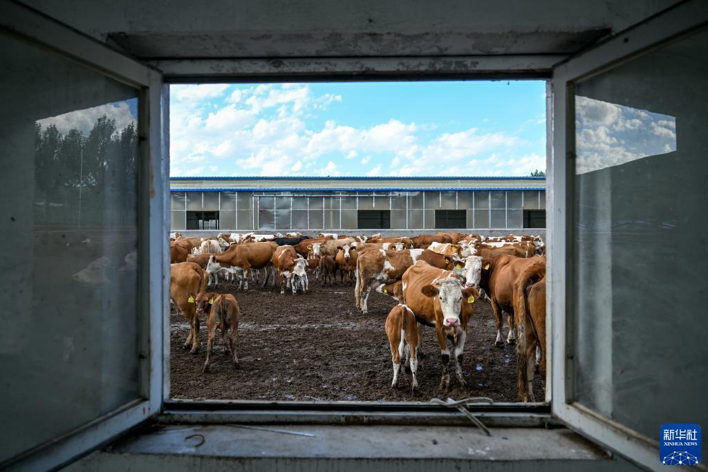 8月3日,在扎魯特旗百順養殖專(zhuān)業(yè)合作社,母牛喂養小牛犢。