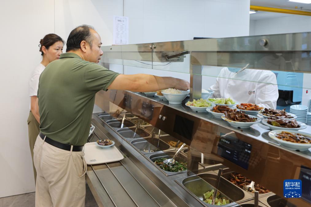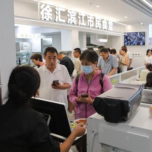 8月4日,顧客在徐匯濱江黨群服務(wù)中心的“徐匯濱江市民食堂”取餐。