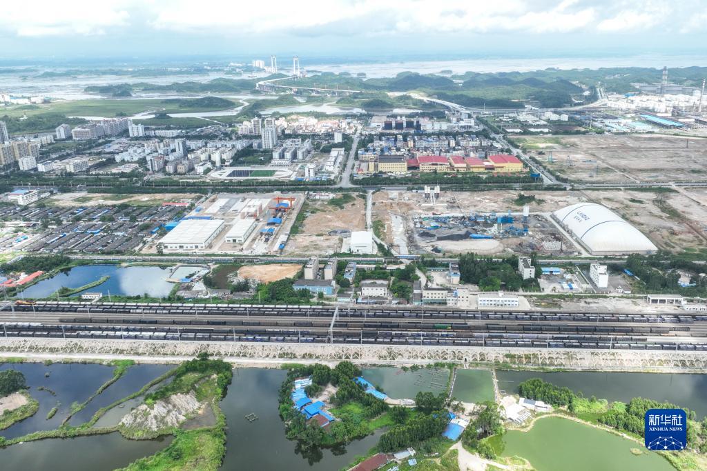 這是7月22日拍攝的欽州港站和周邊工業(yè)區(無(wú)人機照片)。