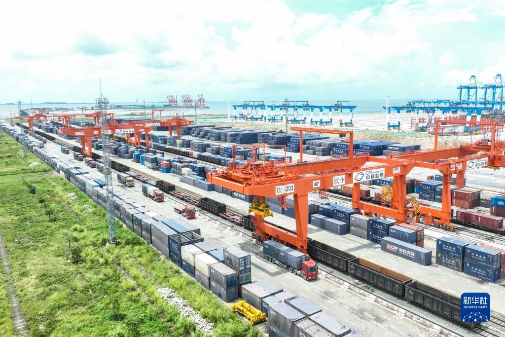 這是7月22日拍攝的欽州鐵路集裝箱中心站(無(wú)人機照片)。
