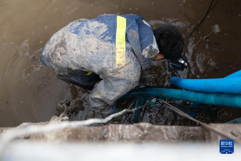 8月6日,在大海林林業(yè)局有限公司自來(lái)水供應站,工作人員在清理室內淤積。