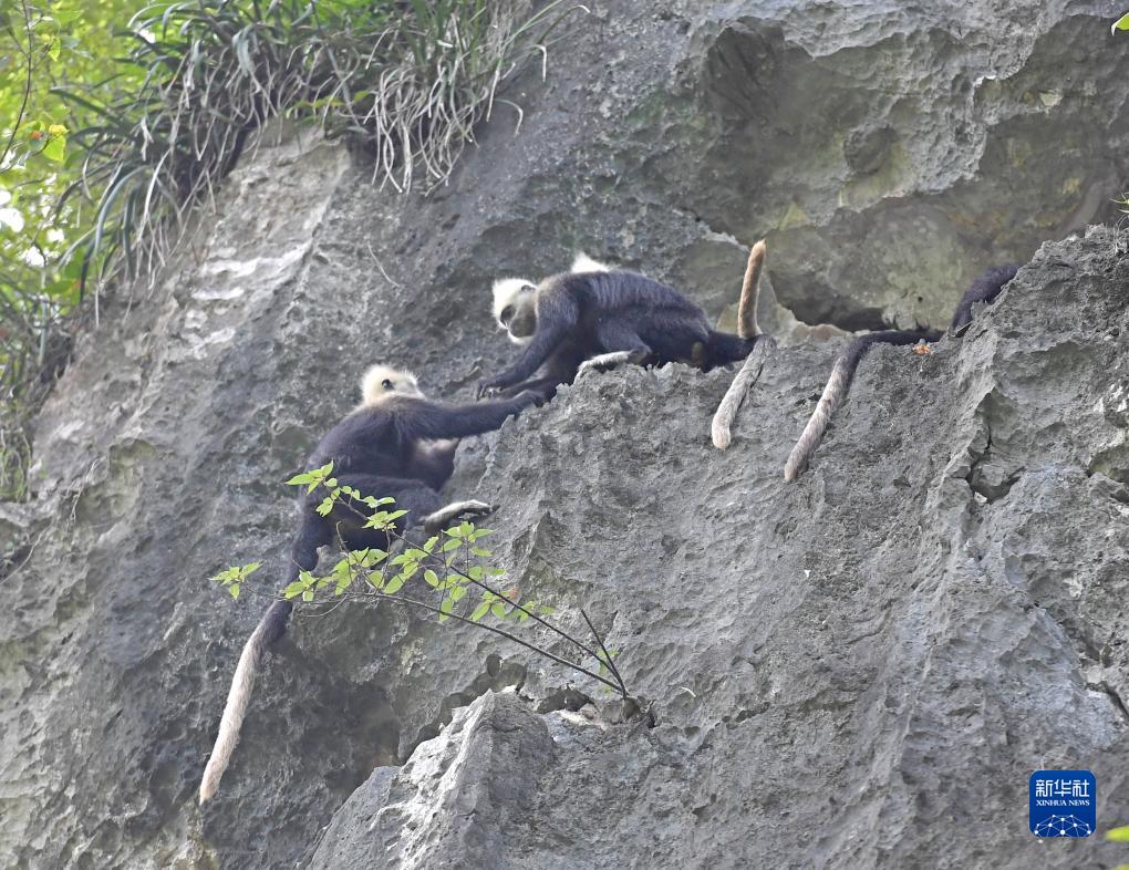 白頭葉猴,頭頂高聳著(zhù)一撮白毛,是我國特有的國家一級重點(diǎn)保護野生動(dòng)物,種群數量稀少,主要分布在廣西崇左市左江和明江之間約200平方公里的喀斯特石山地區。白頭葉猴還有個(gè)好聽(tīng)的名字——“石山精靈”。