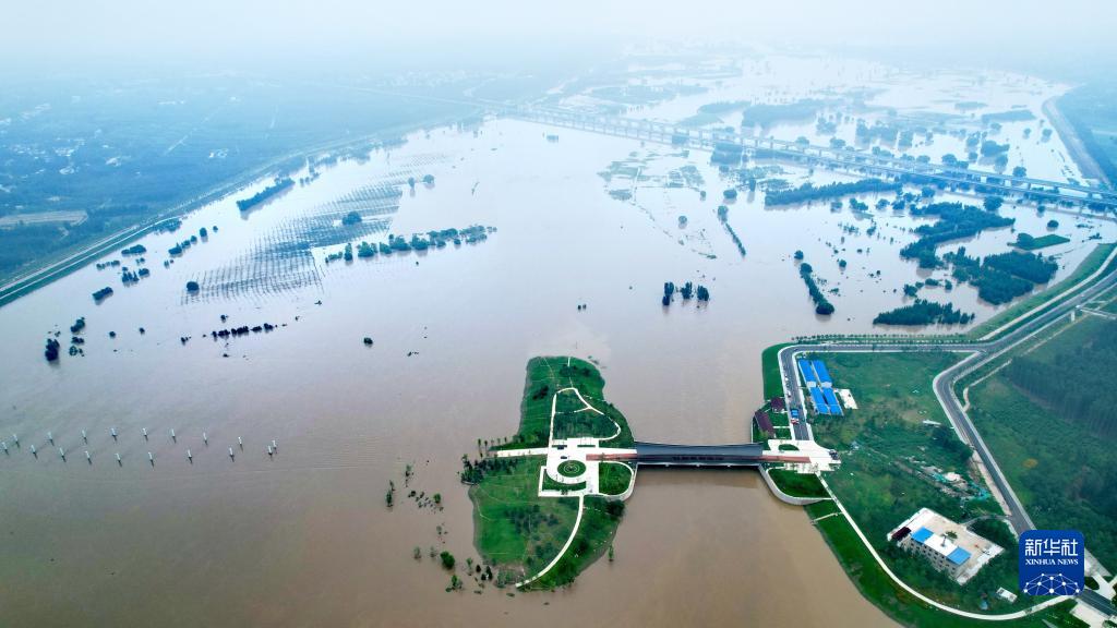 新蓋房水利樞紐分洪閘和溢流堰(8月4日攝,無(wú)人機照片)。