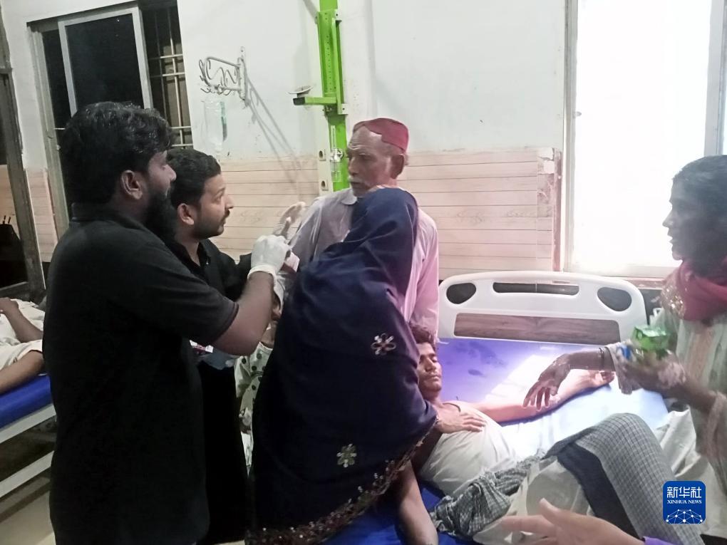 8月6日,在巴基斯坦南部信德省??藸柕貐^的醫院,一名受傷的男子接受治療。