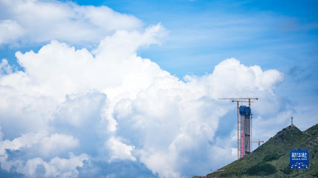 正在修建中的花江峽谷大橋5號主塔(8月3日攝)。