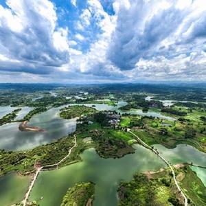 8月6日,湖南桂陽(yáng)舂陵國家濕地公園,綠水、濕地、藍天相映成趣,構成一幅秀美的夏日生態(tài)畫(huà)卷(無(wú)人機照片)。
