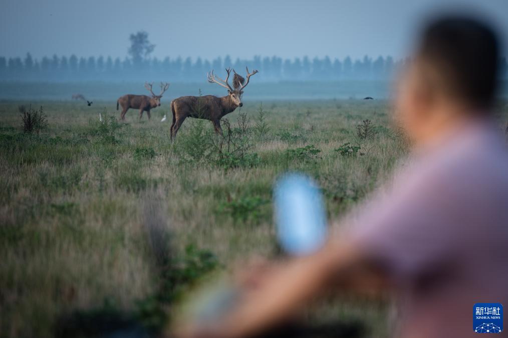 “目前我們觀(guān)測到保護區內已經(jīng)形成10多個(gè)麋鹿繁殖群體,大小不一?!焙笔作缏箛壹壸匀槐Wo區管理處工程師張玉銘介紹。截至5月25日,保護區今年新增460頭麋鹿幼崽,整個(gè)保護區的麋鹿種群目前近2000頭。