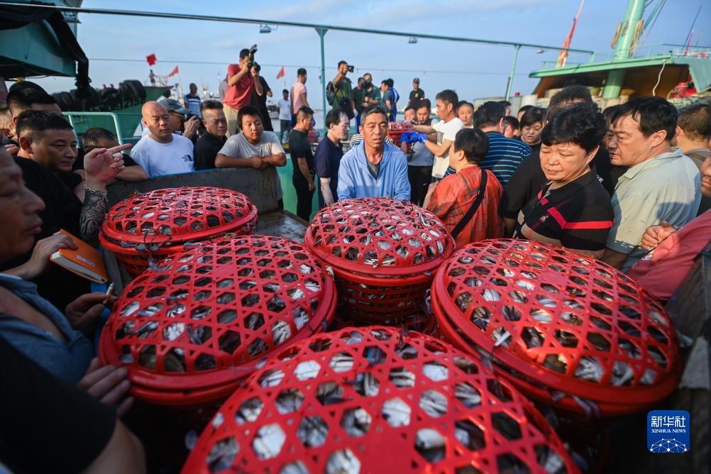 8月6日東海部分解禁開(kāi)漁,浙江舟山市首批申請了專(zhuān)項捕撈特許的漁船(桁桿拖蝦、籠壺類(lèi)、刺網(wǎng)和燈光圍(敷)網(wǎng)四種類(lèi)型漁船)結束休漁,開(kāi)赴東海海域,進(jìn)行捕撈作業(yè)。漁運船和漁船一同抵達作業(yè)漁場(chǎng),捕撈上來(lái)的魚(yú)獲由漁運船先行送回港口碼頭,漁船則留在海上繼續生產(chǎn),因此8月7日首批新鮮的梭子蟹、鯧魚(yú)、大小黃魚(yú)等就能來(lái)到沈家門(mén)漁港,豐富百姓的餐桌。