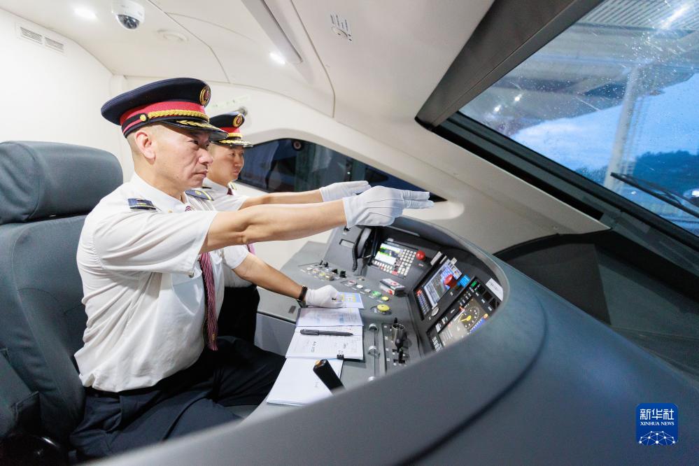 8月8日,D6171次列車(chē)司機進(jìn)行開(kāi)車(chē)前的準備。