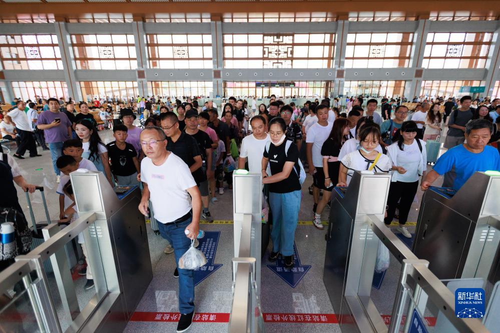 8月8日,旅客在荔波站內檢票上車(chē)。