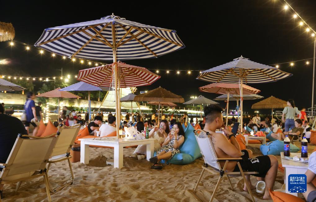 8月5日晚,江蘇省連云港市在海一方公園熱鬧非凡,夜間消費火爆。