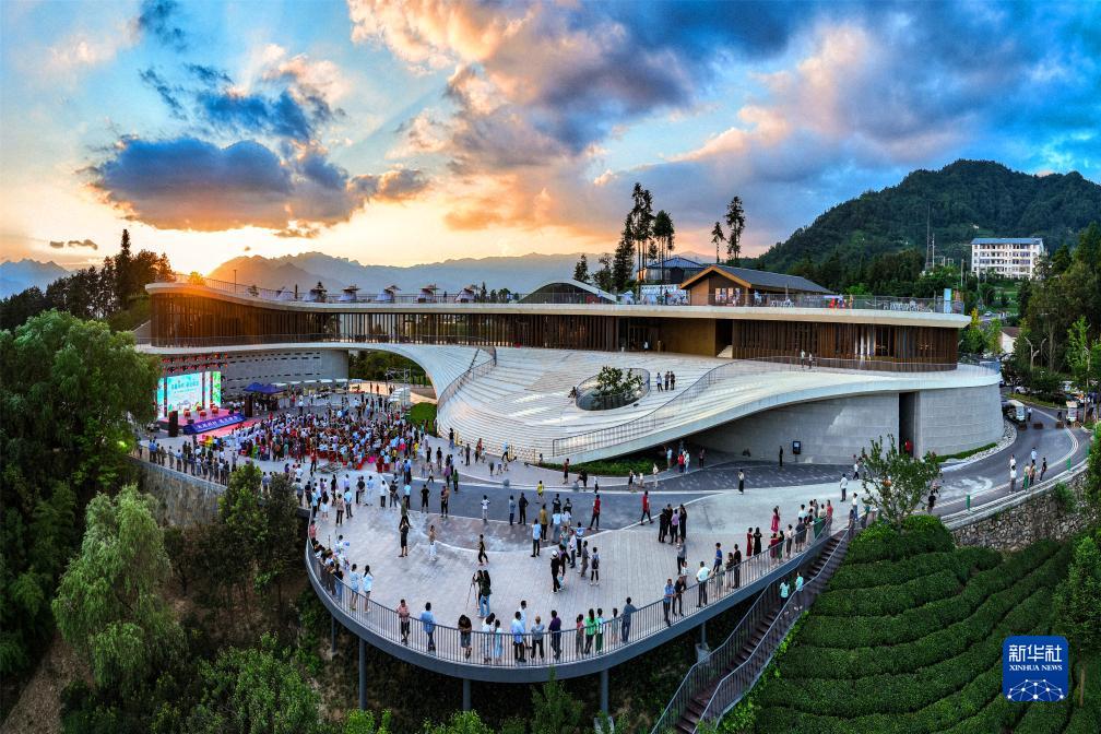 8月4日傍晚,游客在湖北省宜昌市夷陵區“云居鄧村 遇見(jiàn)清涼”納涼季上游玩(無(wú)人機照片)。