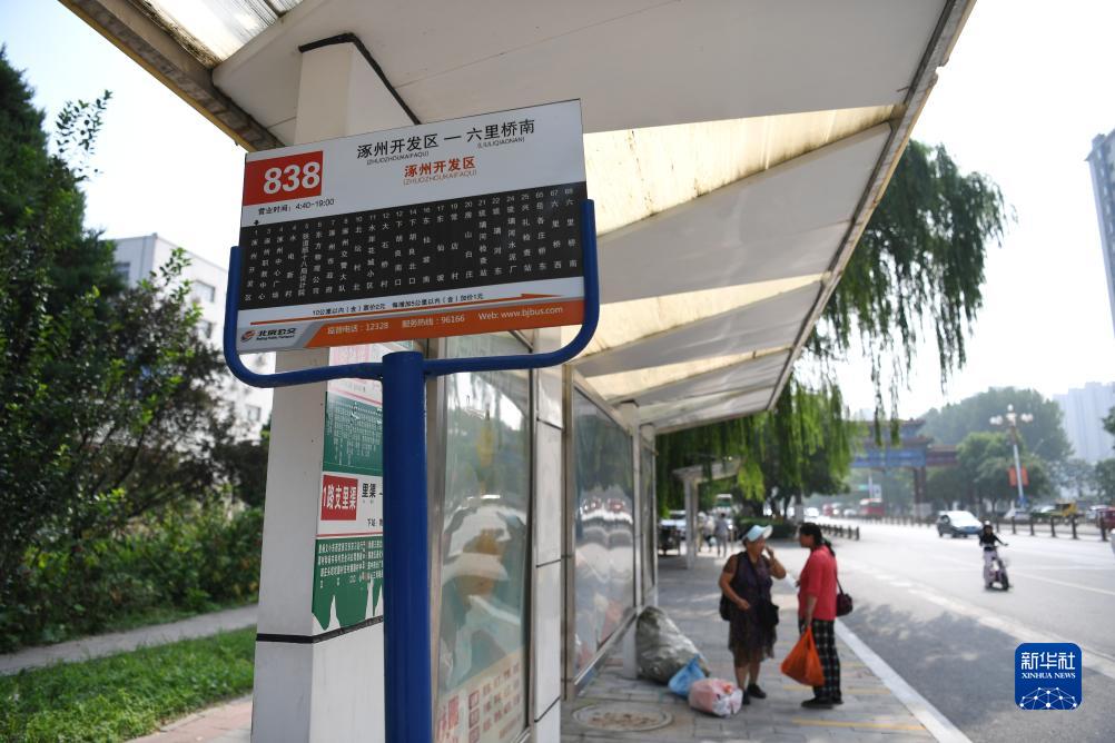 8月9日,乘客在北京公交838路涿州開(kāi)發(fā)區站候車(chē)。
