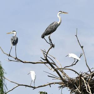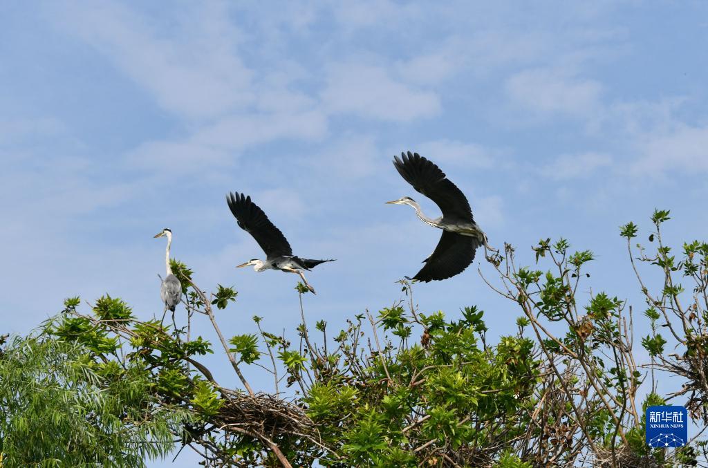今年入夏以來(lái),大量蒼鷺、白鷺等野生鳥(niǎo)類(lèi)在山東省成武縣的文亭湖濕地內棲息。