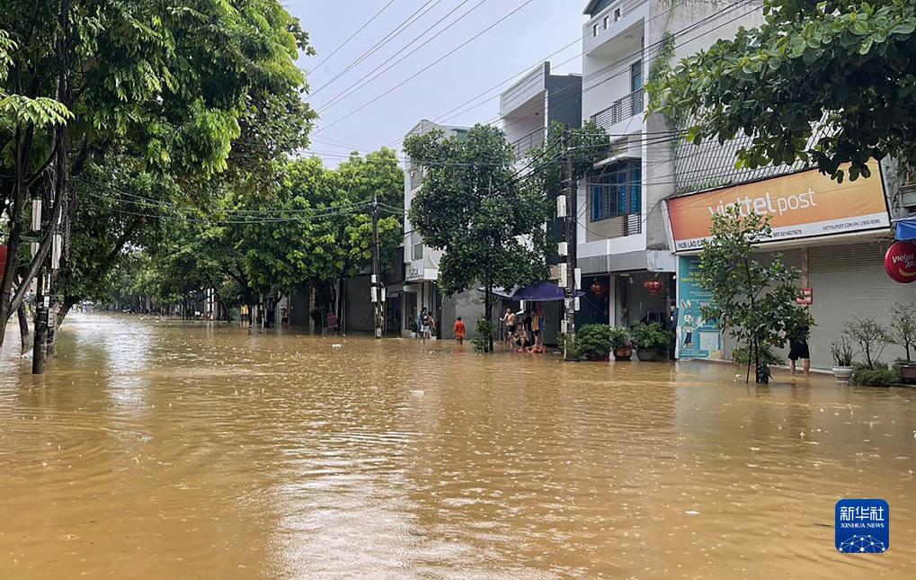 8月3日,在越南老街省,洪水造成局部?jì)葷场?/p>