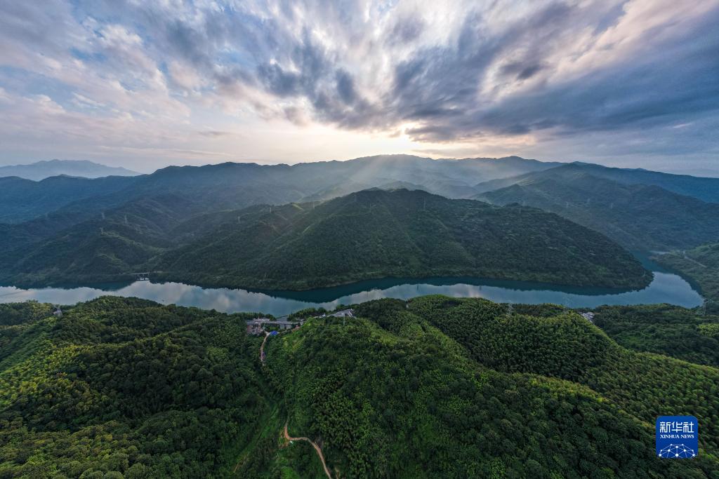 這是8月9日在資興市東江湖風(fēng)景區拍攝的小東江風(fēng)光(無(wú)人機照片)。