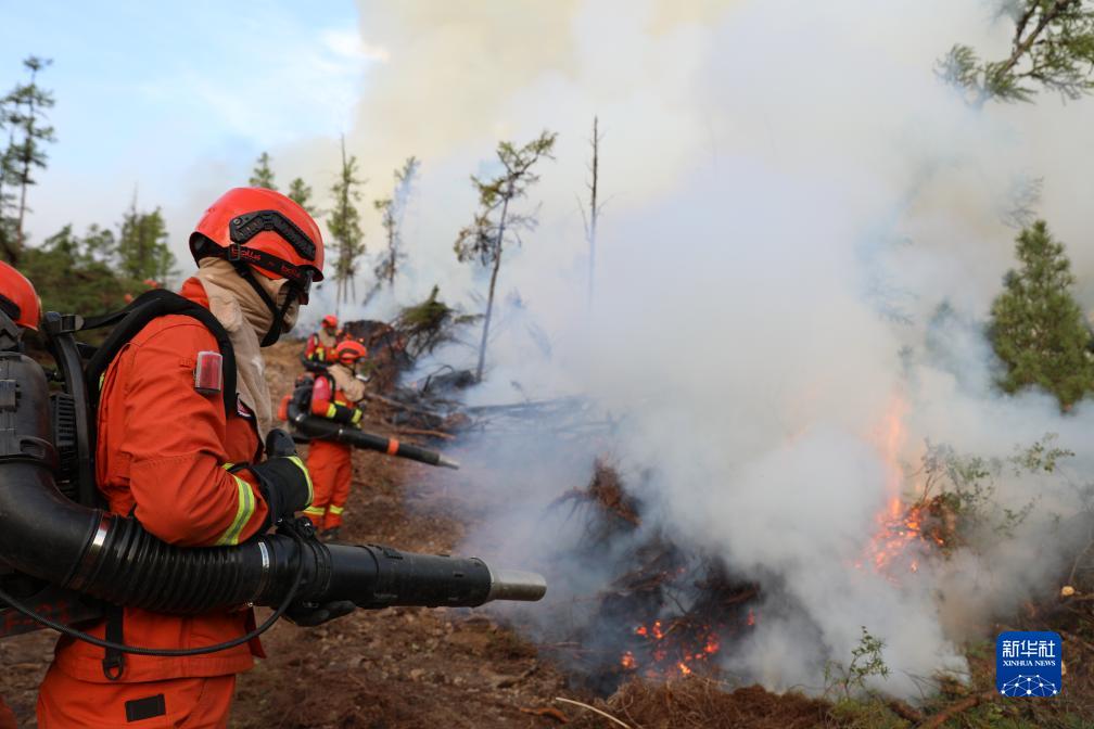 8月9日,內蒙古呼倫貝爾市森林消防支隊官兵在內蒙古大興安嶺林區內滅火。