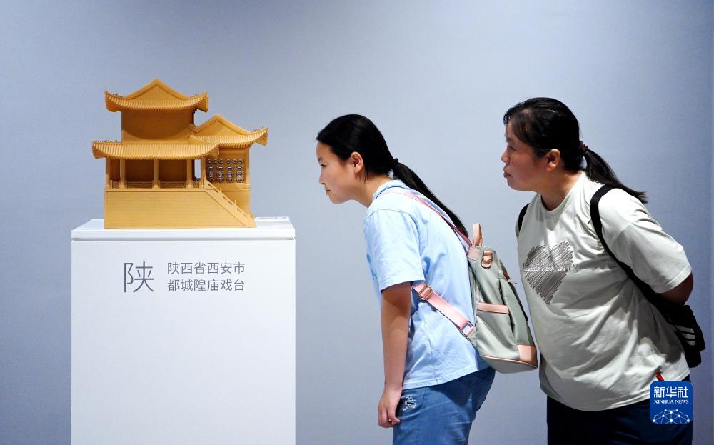 參觀(guān)者在中國秦腔藝術(shù)博物館里觀(guān)看微縮戲樓里播放的秦腔演出選段(8月8日攝)。