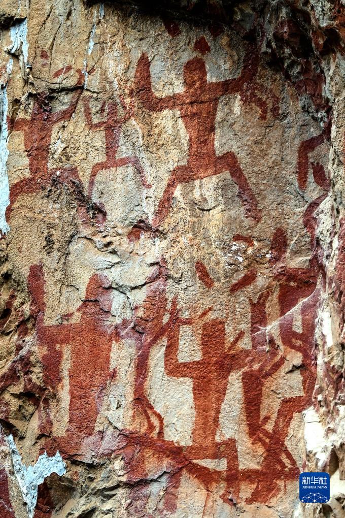 這是廣西崇左市寧明縣的花山巖畫(huà) ,畫(huà)面仿佛一個(gè)個(gè)“跳舞的小人”(8月8日攝)。
