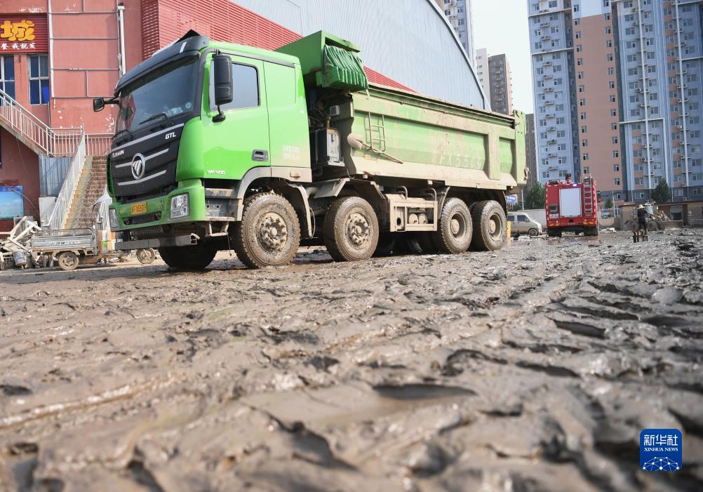 8月9日,卡車(chē)在涿州新發(fā)地大石橋農副產(chǎn)品批發(fā)市場(chǎng)清運垃圾和淤泥。