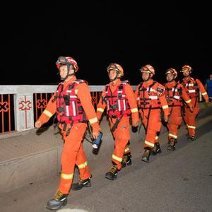 8月9日凌晨,在天津市靜海區臺頭鎮,天津消防救援總隊的消防員巡查經(jīng)過(guò)革命橋。