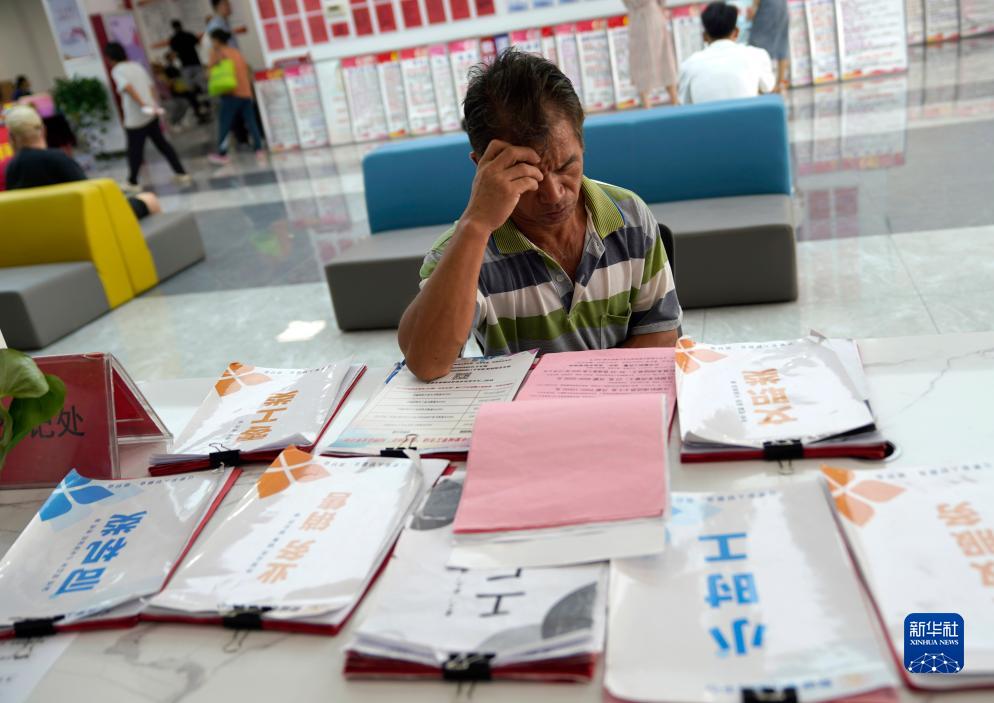 8月9日,一名求職者在浙江省金華市婺城區零工服務(wù)中心內查看用工信息。