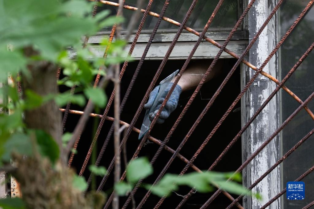 8月9日,在俄羅斯莫斯科州,工作人員清理爆炸現場(chǎng)的破損玻璃。新華社記者 白雪騏 攝