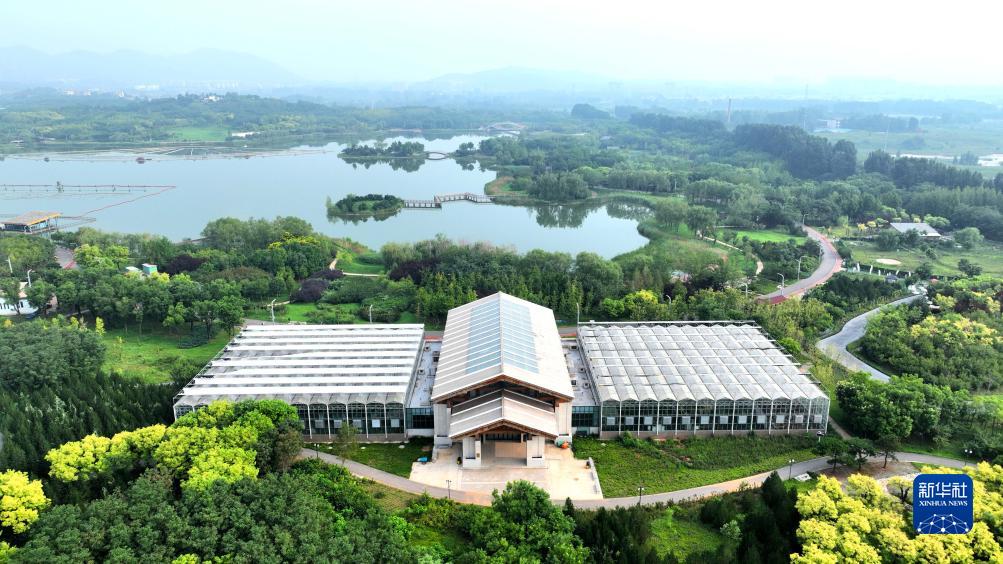 8月9日拍攝的位于河北省石家莊市鹿泉區龍泉湖公園內的一處公園書(shū)房(無(wú)人機照片)。
