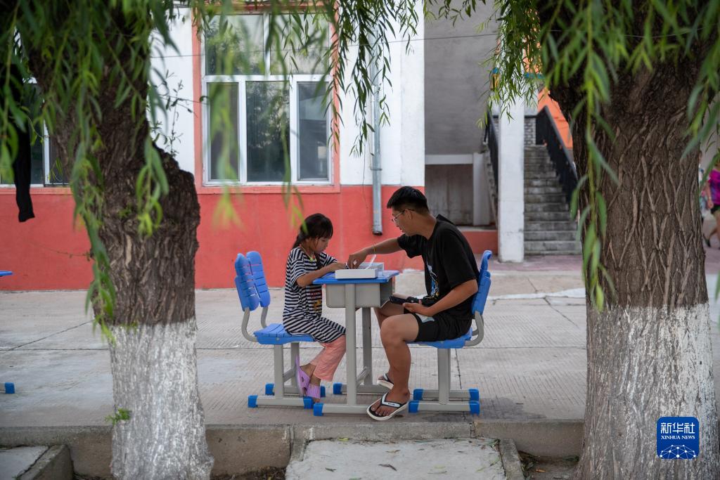 8月9日,當地居民在五常市時(shí)代中學(xué)集中安置點(diǎn)下棋。