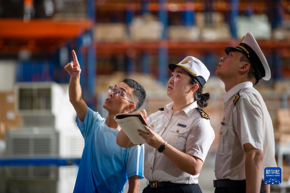 8月10日,在浙江省金華市金義綜合保稅區云倉跨境華東中心倉內,海關(guān)工作人員在核驗跨境商品。