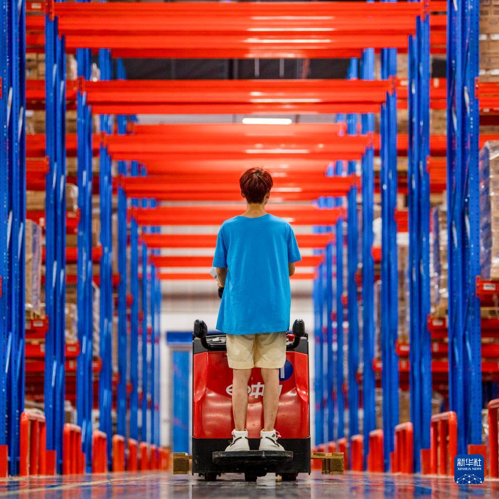 8月10日,在浙江省金華市金義綜合保稅區云倉跨境華東中心倉內,工作人員在發(fā)貨前理貨。
