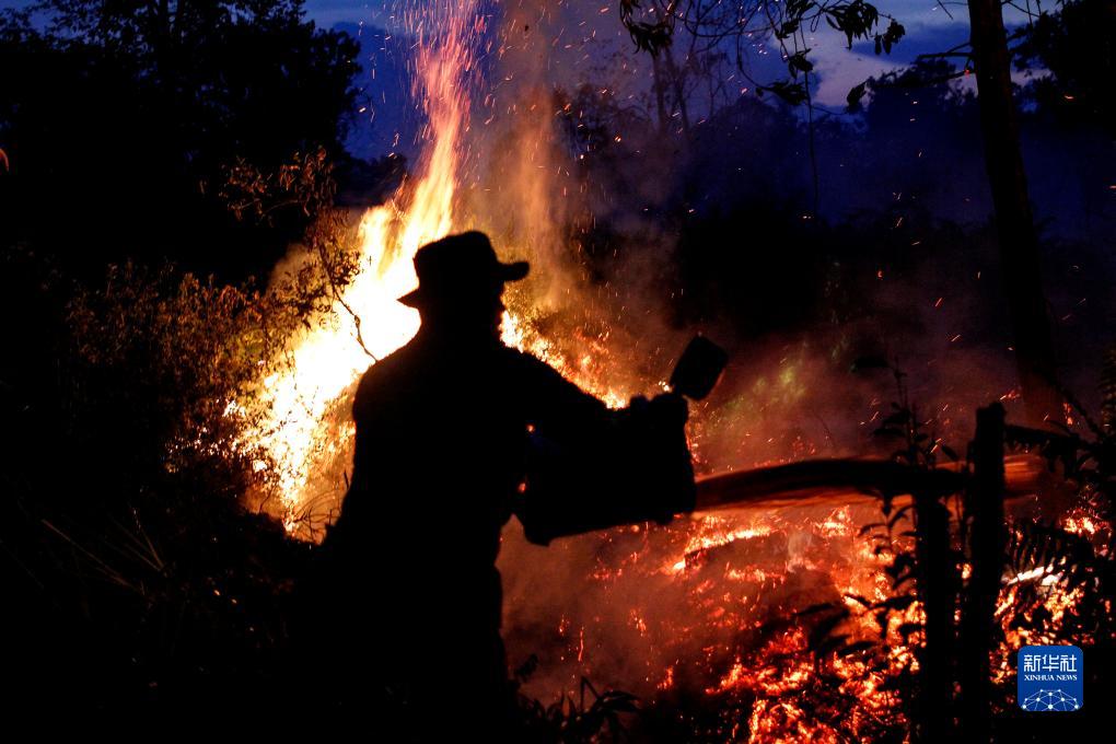 8月10日,在印度尼西亞廖內省金寶縣林博班讓村,消防人員處理泥炭地火情。