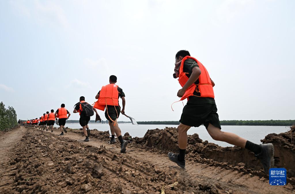 在天津市靜海區王口鎮千里堤、茁頭排干西堤加固搶險一線(xiàn),武警第一機動(dòng)總隊官兵爭分奪秒加固涉險堤壩,切實(shí)維護群眾生命安全。