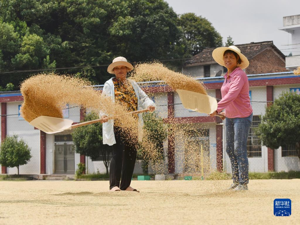 立秋以來(lái),貴州、湖南等地農民搶抓晴好天氣,晾曬收獲的作物。
