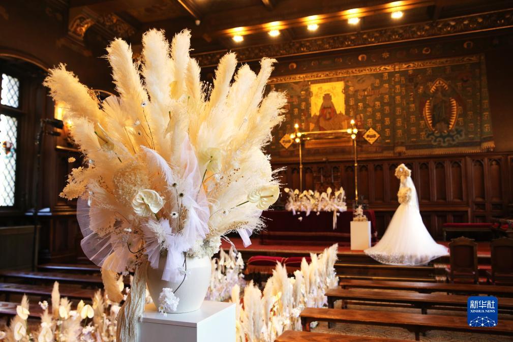 這是8月11日在比利時(shí)布魯塞爾“鮮花時(shí)光”展覽上拍攝的花藝作品。