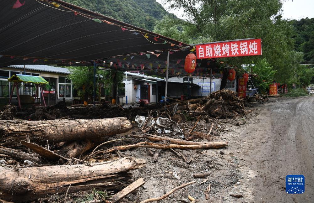這是8月12日拍攝的西安市長(cháng)安區灤鎮街道喂子坪村雞窩子組山洪泥石流災害現場(chǎng)。
