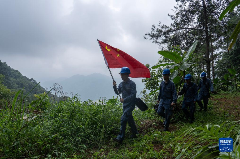 8月10日,“國旗巡線(xiàn)班”在山路上行走。
