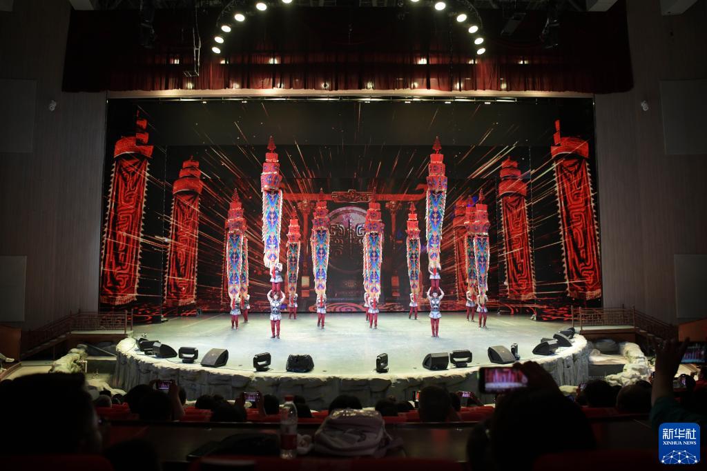 8月12日,在河北省滄州市吳橋縣江湖大劇院,游客們觀(guān)看雜技表演。