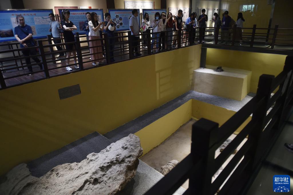 8月8日,參加集中采訪(fǎng)的媒體記者在位于河南省鄭州市的古滎漢代冶鐵遺址博物館參觀(guān)采訪(fǎng)。