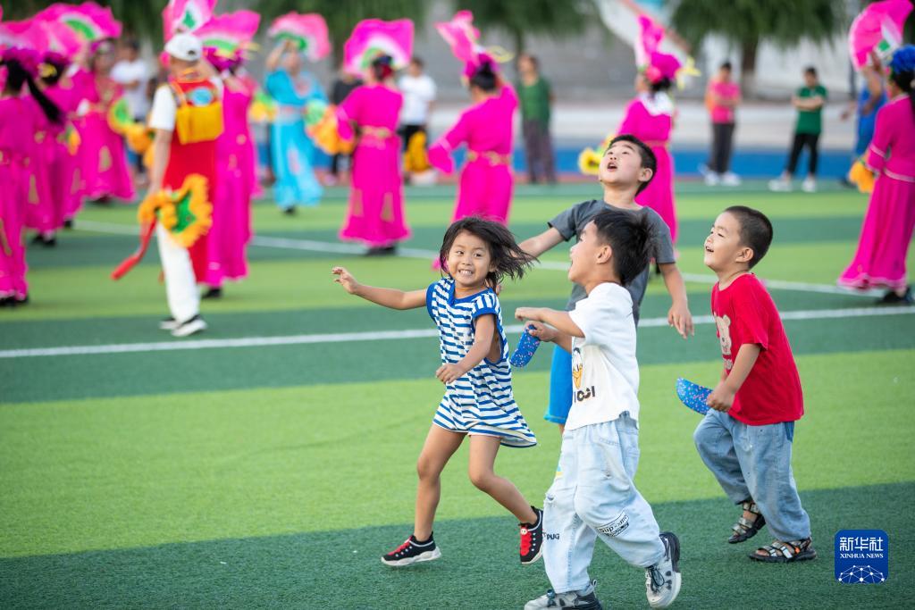 8月9日,小朋友在五常市時(shí)代中學(xué)集中安置點(diǎn)玩耍。