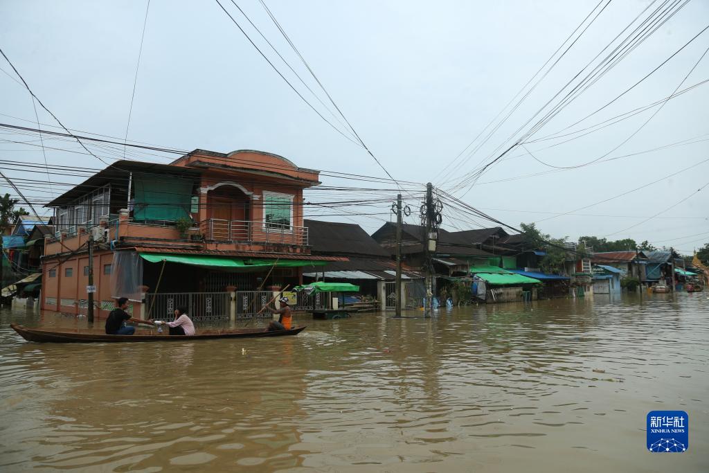 這是8月12日拍攝的緬甸勃固鎮洪災區。新華社發(fā)(苗覺(jué)梭攝)