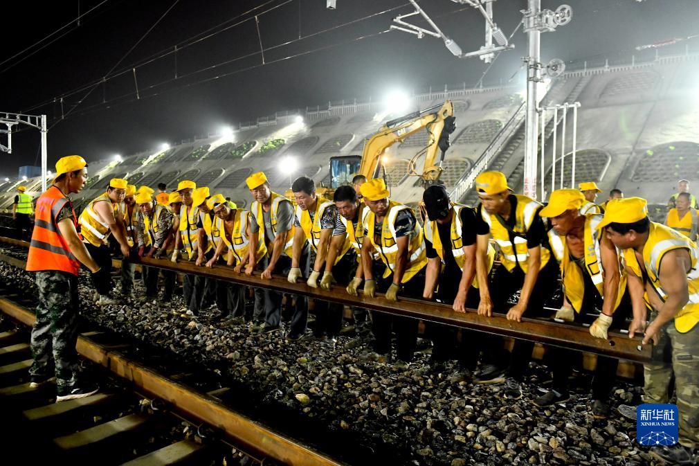 8月12日,中鐵十局的工作人員在濟鄭高鐵山東段大廟屯線(xiàn)路所42號道岔I級施工。