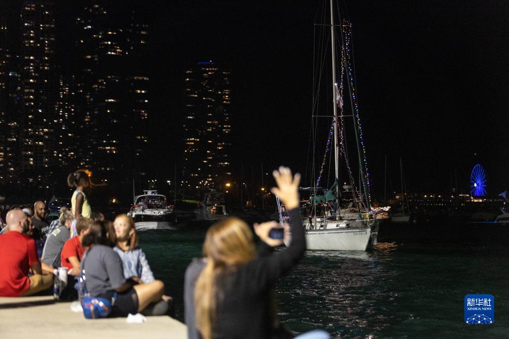這是8月12日在芝加哥拍攝的“威尼斯游船秀”現場(chǎng)。