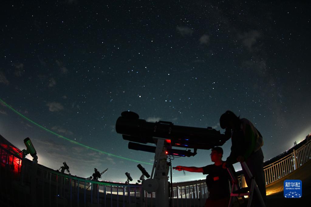 天文愛(ài)好者在哈巴湖天文臺觀(guān)看星空(8月13日攝)。
