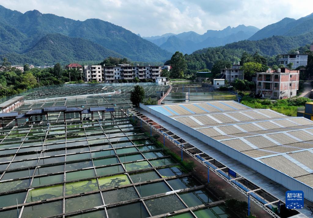 這是無(wú)人機航拍的福州市閩侯縣南通鎮古城村春園鯉生態(tài)養殖場(chǎng)全景(8月9日攝,無(wú)人機照片)。
