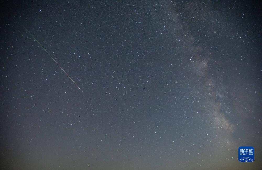 在四川省三臺縣魯班鎮,英仙座流星雨劃過(guò)夜空(8月14日攝)。