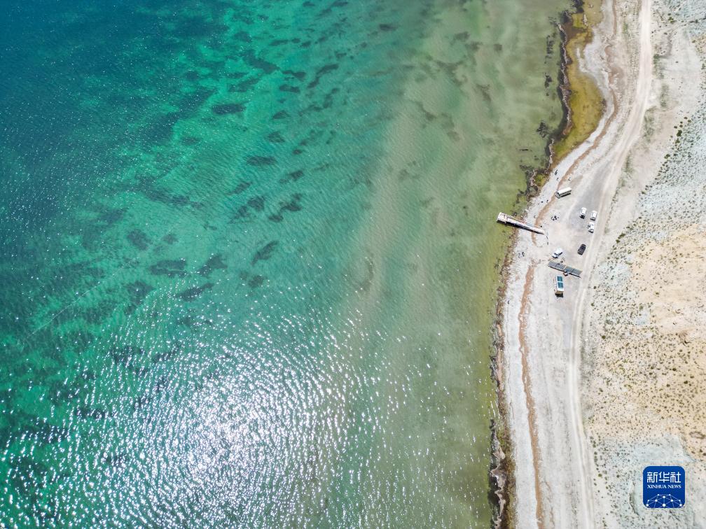 鳥(niǎo)瞰秋日瑪旁雍錯(無(wú)人機照片,8月13日攝)。