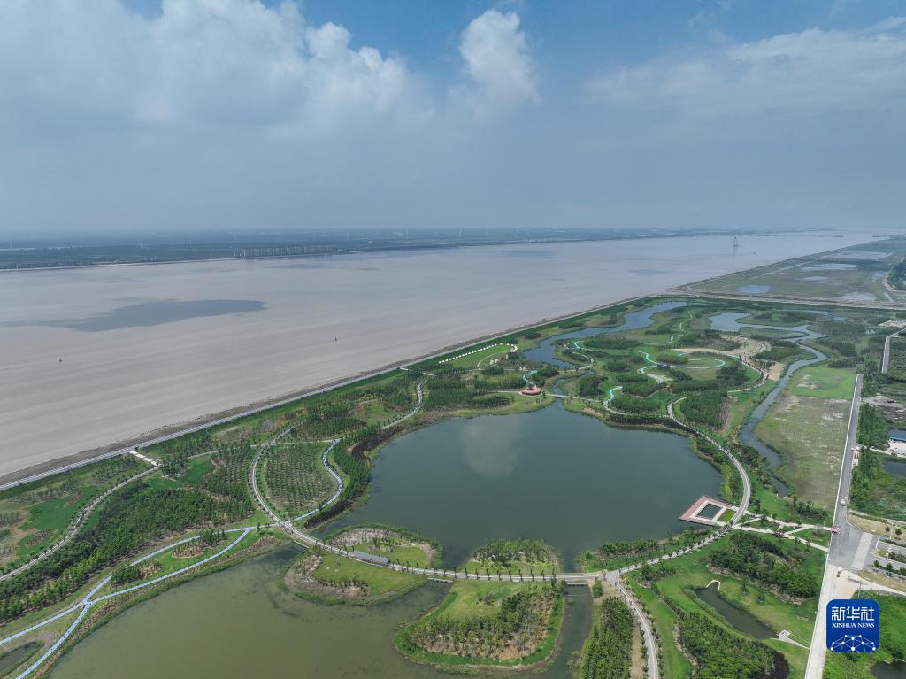 這是江蘇省啟東市濱江生態(tài)綠廊(2023年7月24日攝,無(wú)人機照片)。