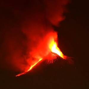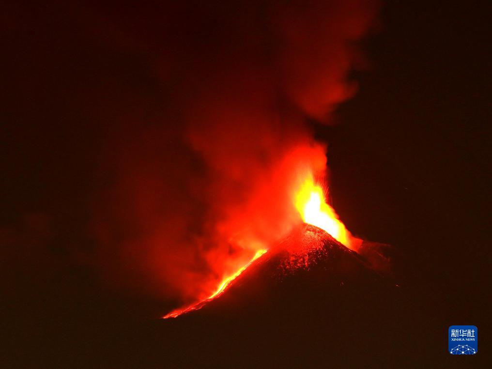 這是8月14日在意大利西西里島卡塔尼亞拍攝的正在噴發(fā)的埃特納火山。