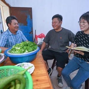 8月15日,織里鎮云村村的民主監事會(huì )成員(右一、右二)在村民家中收集民情民意。